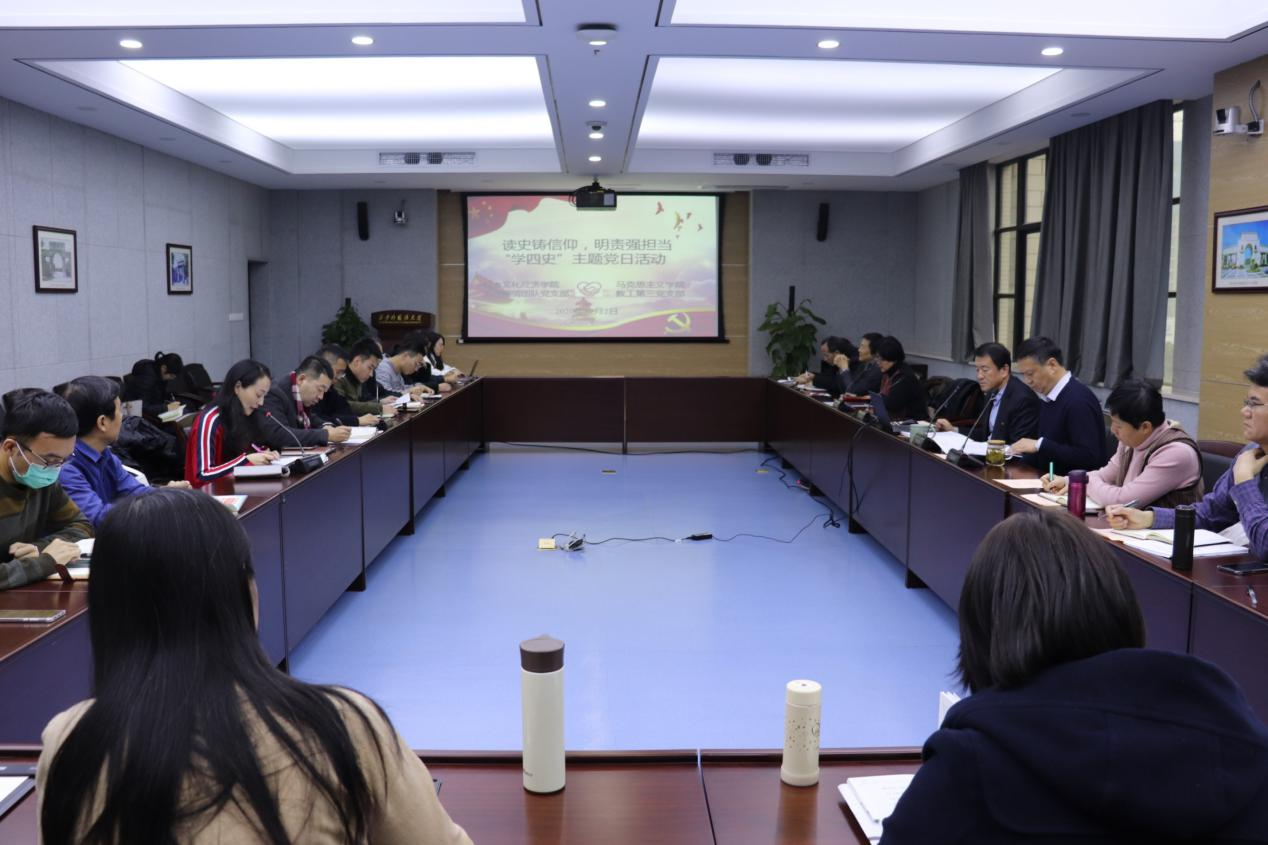 12月2日下午,百合漫画 文学国情团队党支部与马克思主义学院教工第三党支部共同开展了“读史铸信仰,明责强担当”党日活动。校党委书记白黎、校党委副书记王天平、百合漫画 院长毋育新、百合漫画 党委书记金红梅、马克思主义学院院长张亲霞、马克思主义学院党委书记王廷光,以及两学院党支部成员参加了本次会议。本次会议由百合漫画 副院长、文学国情团队党支部书记葛睿主持,并开展了以下学习与讨论活动。