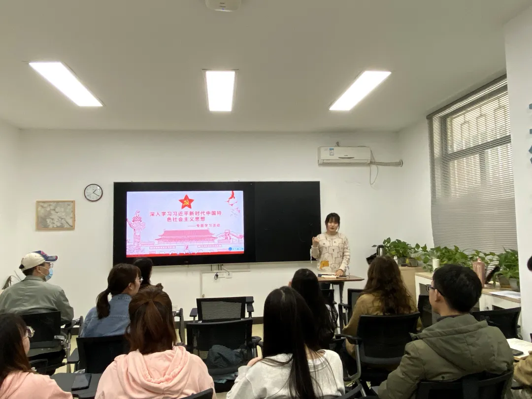 支部委员李嘉文同志首先从习近平新时代中国特色社会主义思想的核心内容出发,带领支部党员深刻认识了习近平新时代中国特色社会主义思想的核心要义和理论品格。
