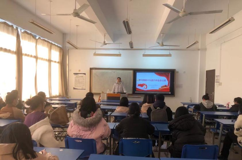 黄婷首先向大家系统介绍了中央全会,对每一次中央全会的议题做了说明。之后,她带领大家学习了十九届六中全会的精神,学习了《中共中央关于党的百年奋斗重大成就和历史经验的决议》重要内容。她指出党的十九届六中全会是在重要历史关头召开的一次具有重大历史意义的会议,全面总结了党的百年奋斗重大成就和历史经验,对推动全党进一步统一思想、统一意志、统一行动,团结带领全国各族人民夺取新时代中国特色社会主义新的伟大胜利,具有重大的现实意义和深远的历史意义。全会审议通过的《中共中央关于党的百年奋斗重大成就和历史经验的决议》,是新时代中国共产党人牢记初心使命、坚持和发展中国特色社会主义的政治宣言,是以史为鉴、开创未来、实现中华民族伟大复兴的行动指南。