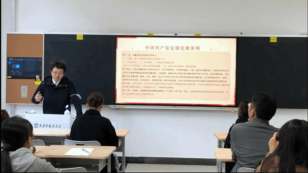 活动第二项,根据校党委关于认真贯彻落实《关于严格执行中国共产党党徽党旗条例》规范党建标识设计制作使用工作的通知精神和要求,为深入学习贯彻《中国共产党党徽党旗条例》,进一步规范党徽党旗使用,充分发挥党徽党旗的政治功能,支部书记雷雨首先传达了相关通知精神和要求,接着由支部副书记张琰龙带领全体党员认真学习了《中国共产党党徽党旗条例》全文,对党徽党旗制作、使用、管理的基本要求进行了详细介绍。《中国共产党党徽党旗条例》的制定和实施,对于充分发挥党徽党旗的政治功能,增强党的凝聚力、战斗力,激发党员党的意识,激励全党不忘初心、牢记使命,坚定理想信念,团结带领全国各族人民在党的旗帜下奋勇前进,具有十分重要的意义。全体党员要熟悉党徽党旗制作的各项标准、使用场合和管理方法,熟读条例各项规定,把自觉维护党徽党旗作为必须履行的政治责任和义务。支部也将继续深入学习贯彻《中国共产党党徽党旗条例》内容和精神实质,教育引导党员自觉规范使用党徽党旗及图案,同时全面开展自检自查,对发现使用党徽党旗不规范的问题及时纠正。
