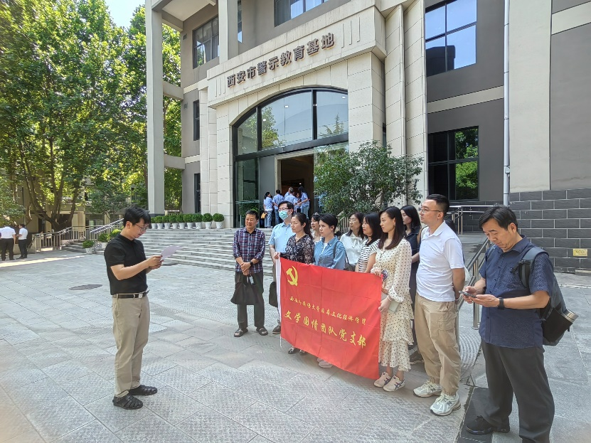 6月5日上午,文学国情团队党支部全体党员和部分优秀学生党员代表共赴西安市警示教育基地,开展“学习党纪条规 筑牢思想防线”党纪学习教育主题党日活动。