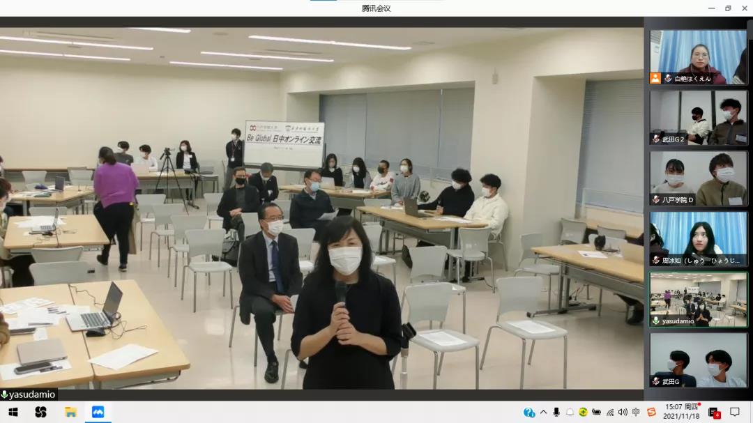 最后,孙伏辰老师进行了总结发言。她表示,此次活动既练习了日语口语表达能力,又加强了文化差异中随机应变交流的能力,推动了中日学生的友好交流。随后,日本八户学院大学两位老师做出总结发言,老师们肯定了本次活动的意义,并就发表的同学们给予高度的赞赏,同时对举办方表示衷心的感谢和诚挚的敬意。