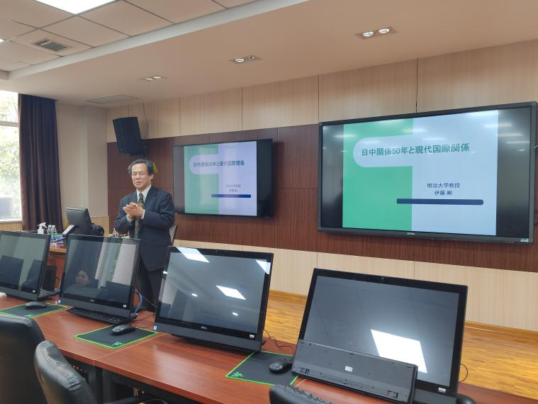 讲座伊始,伊藤教授回顾了中日两国自1972年邦交正常化以来的重要历史节点,并提出了当下两国关系所面临的挑战与机遇。他指出,中日邦交正常化50年来,国际形势风云变幻,两国经济、政治、外交、社会均发生了深刻变化。尽管经历多重严峻考验,但两国都在努力增进相互理解,在多个领域取得了显著的合作成果。