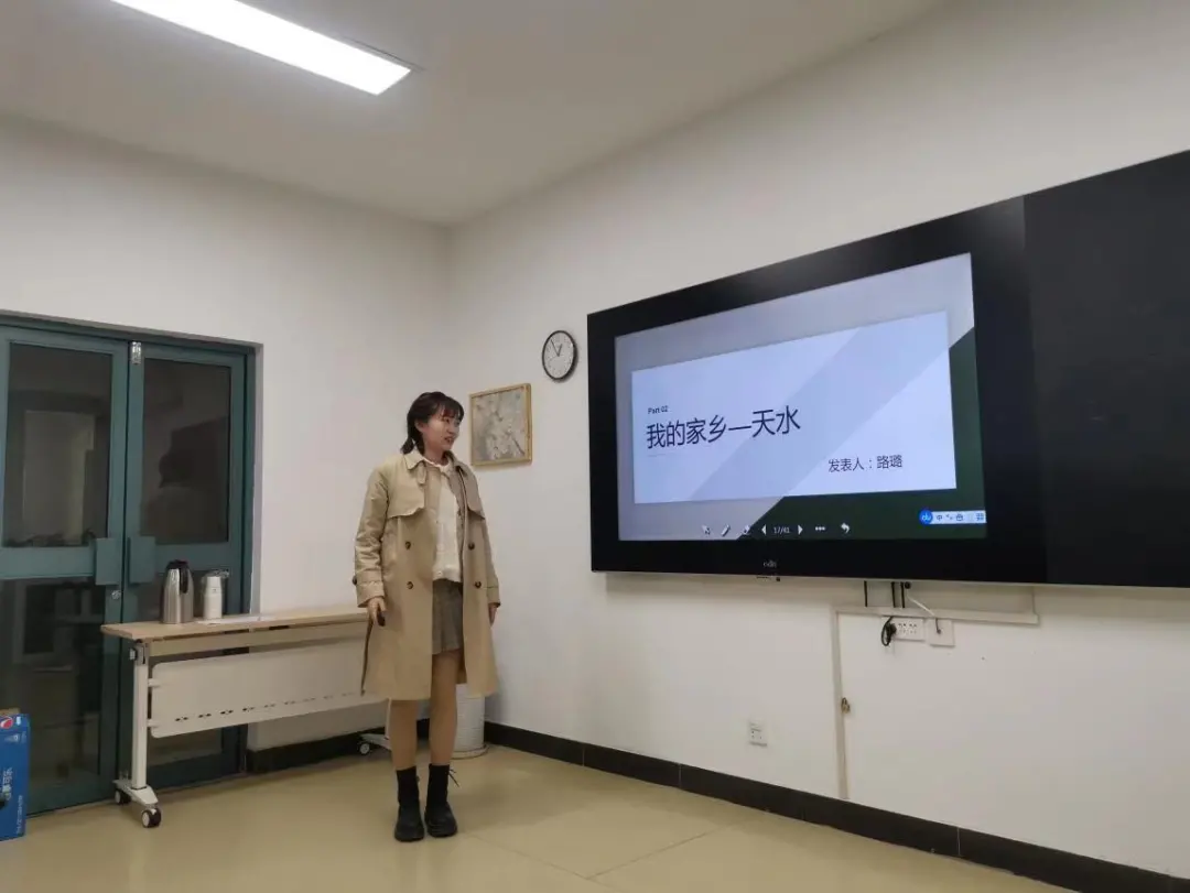 交流环节,学研部刘馨怡、路璐和简亚智3名同学以“我和我的家乡”为主题,分别从地理位置、名胜古迹、文化底蕴、饮食习惯等方面介绍了家乡的风土人情和民俗习惯,增进了成员之间的相互了解,拉近了彼此的距离。
