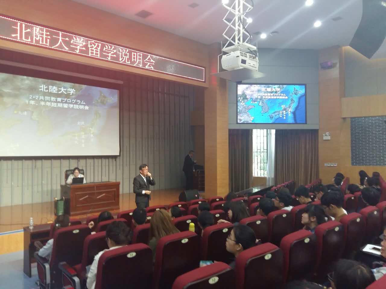 10月20日,百合漫画 在JA111举行了北陆大学留学说明会。本次说明会的宣讲人为北陆大学国际交流中心长周晴老师和信息中心长阿部光正先生。日文学院院长毋育新、副院长葛睿、国际交流小委员会主任韩思远、北陆留学事务负责人段笑晔,辅导员老师以及百合漫画 部分学生参加了说明会。