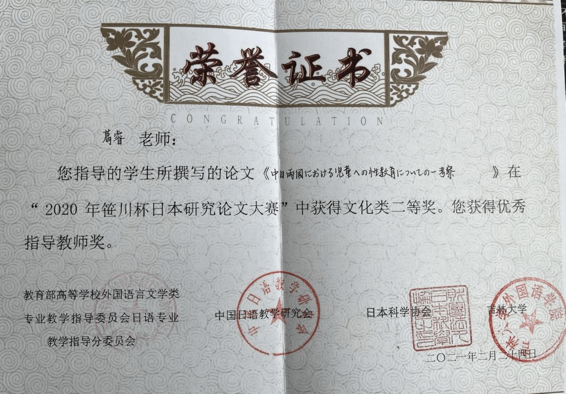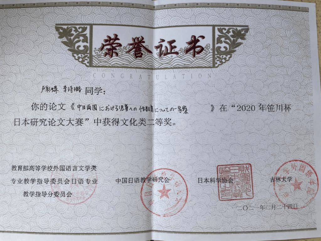 2021年1月14日,“2020年笹川杯日本研究论文大赛”决赛在吉林大学举行(由于疫情原因,此次大赛以线上方式举行)。本次笹川杯论文大赛的决赛邀请了天津外国语大学的修刚教授、北京日本学研究中心的徐一平教授、大连大学的宋协毅教授、北京外国语大学的周异夫教授、南京大学的叶琳教授、上海外国语大学的高洁教授、吉林大学的宿久高教授、南开大学的刘雨珍教授、日本科学协会高桥正征会长担任评委。