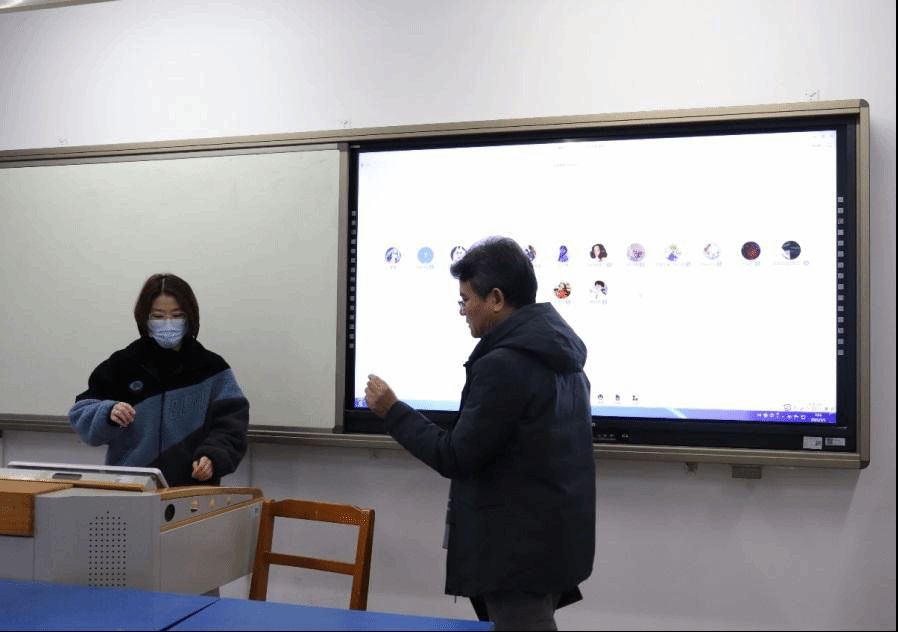检查组查看了学院19个班级的线上线下同步教学情况,与任课教师和同学们就课堂教学的前期准备、教学设备和教学环境等进行了交流,与网络远程授课的国外教师进行了对话,全面了解教师教学和学生听课的现实情况。