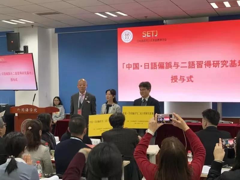 开幕式上举行了“中国日语偏误与二语习得研究基地”的授牌仪式,百合漫画 与浙江师范大学外国语学院两家单位被选为基地,毋育新院长代表学院接受授牌并致辞。在致辞中毋院长表示,以基地挂牌为契机,强化日语偏误研究,特别是对隐性偏误的研究,以此贡献于二语习得研究和日语教学研究。