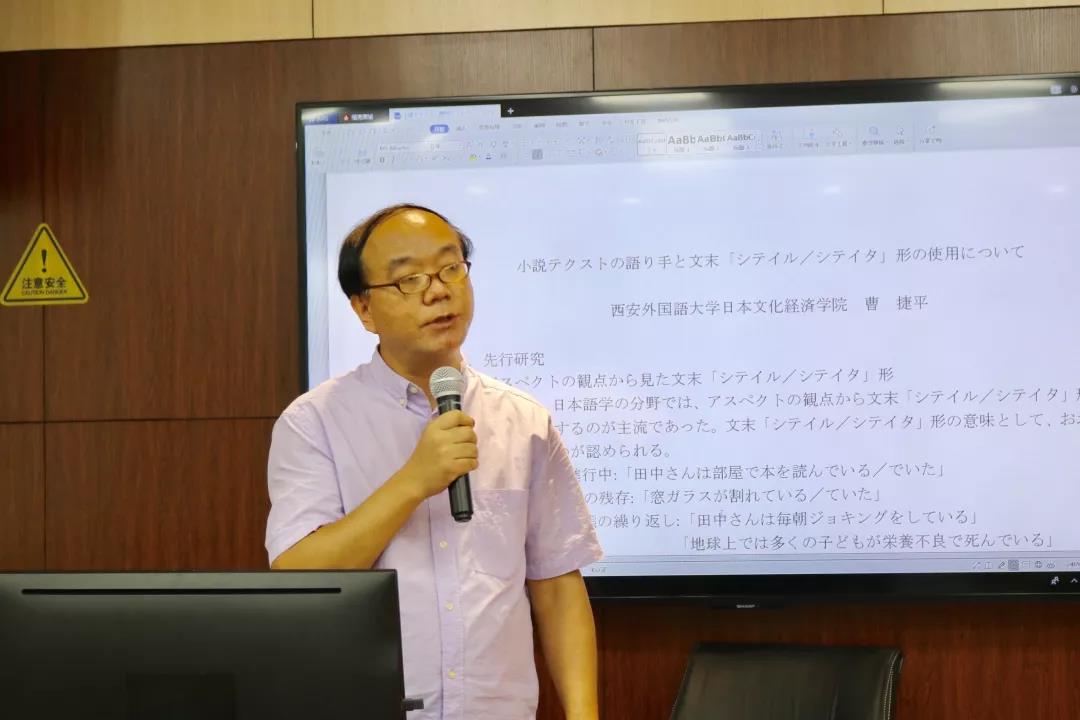 下午1时30分,进入本次论坛的第二阶段,由百合漫画 曹捷平老师以及四位研究生和名古屋大学四位研究生和组成的共同发表。本阶段中,每人有20分钟的时间,其中包括15分钟的内容发表和5分钟的自由提问环节。首先,曹捷平老师以“小説テクストの語り手と文末「シテイル/シテイタ」形の使用について”为主题进行了论文宣读;之后来自名古屋大学和我校的各位研究生依次对自己的研究计划和成果进行了介绍。整场论坛学术气氛浓郁,互动频繁,交流热烈。