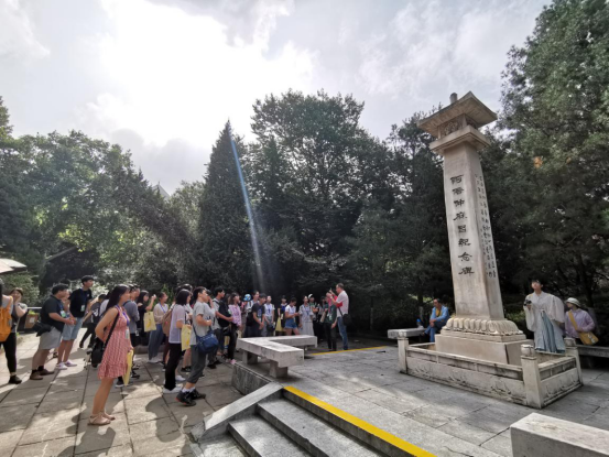 参与交流的中日青年首先来到了兴庆宫公园的阿倍仲麻呂纪念碑进行参观。在阿倍仲麻呂纪念碑前,导游对阿倍仲麻呂的生平和诗作进行了细致的讲解,中日青年专心倾听,收获颇丰。日本青年还在兴庆宫公园内体验了颇具中国特色的舞龙。之后,大家参观了青龙寺,日本青年对与日式建筑相似的青龙寺倍感亲切。接着,一行人参观了空海纪念堂,在导游的讲解中了解到空海对于中日文化交流做出的巨大贡献。在纪念堂前,日本青年看到树上挂着祈愿的红丝带,也纷纷用中文写下自己的心愿,挂在了树上。在品尝了陕西特色美食后,中日青年还共同参观了碑林博物馆和西安明城墙。陕西悠久的历史、灿烂的文化给全体成员留下了深刻而难忘的记忆。