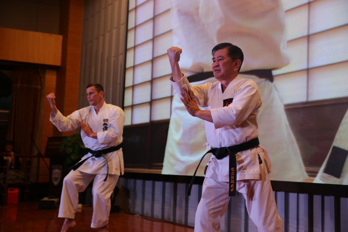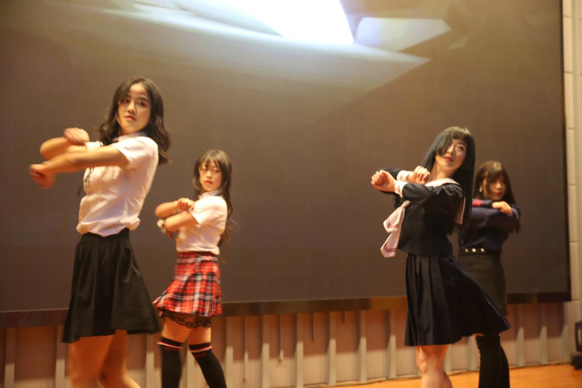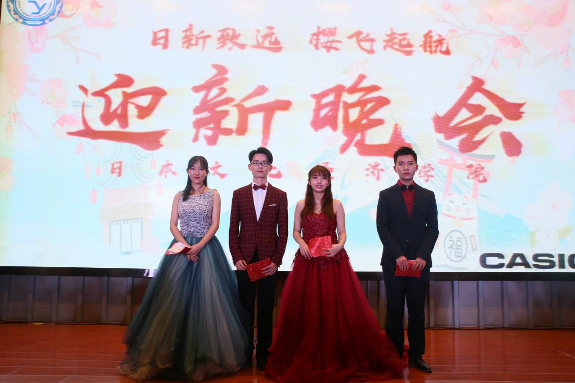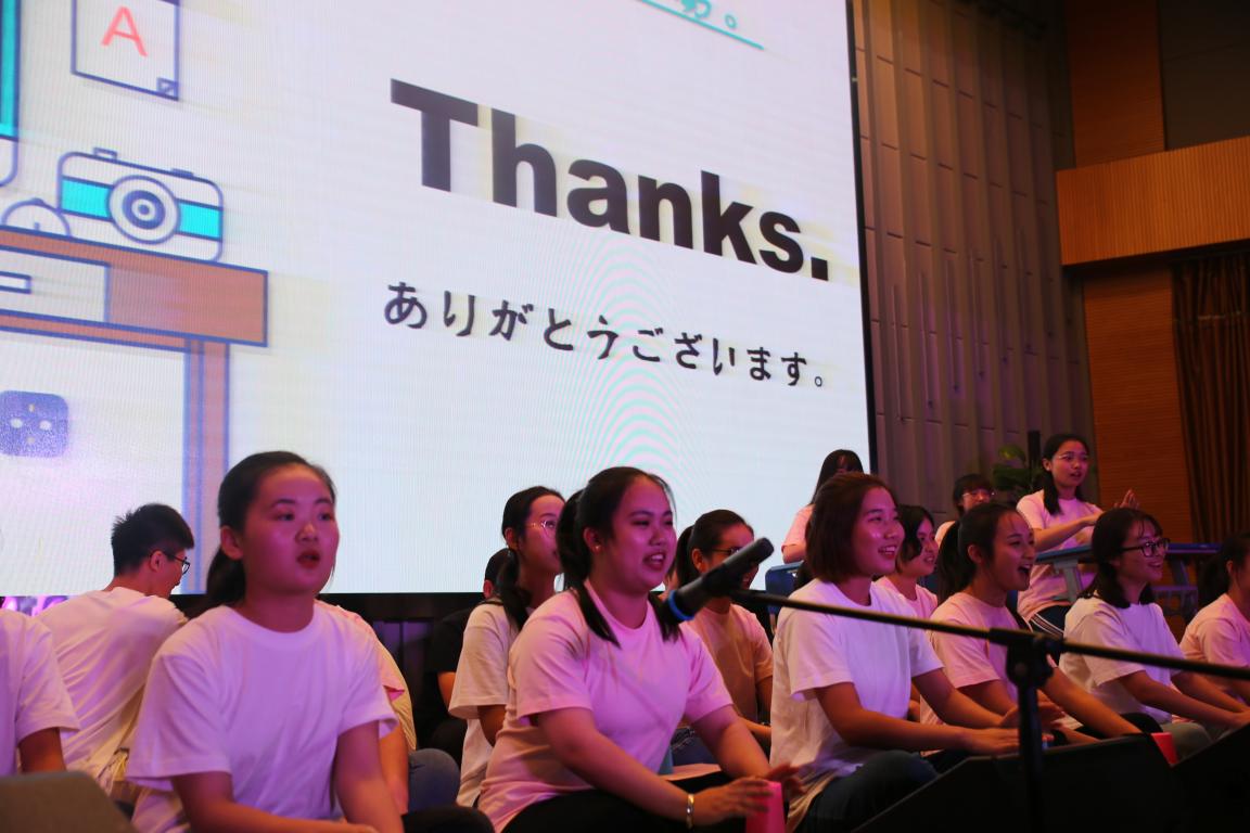 令人耳目一新的是老师们带来的《走秀》演出。马褂、旗袍、西装、晚礼服、中山装,伴随着一首首老歌,现场仿佛回到了那个美好纯真、流连忘返的年代。走过老上海的复古车道,我们来到前卫的时代广场。灯光闪烁、烟雾缭绕,爵士《DDU-DU DDU-DU》凝聚了当下流行的街头艺术,节奏欢快,现场掌声雷动。幽默诙谐的相声《话说方言》,令观众捧腹大笑。新潮的BBOX,动感的拉丁舞,悠扬的《天地无霜》,每个节目都凝聚了参与者的心血,每个节目都与现场摩擦出不同的火花。由三位外教老师带来的空手道表演将现场的氛围带上了又一个高潮。冲拳、扬受、手刀、前踢,一个个招式展现了日本武道独特的魅力,现场惊呼不断。追梦是个永恒的话题,追梦似乎是每个人与生俱来的权利,却更是个令人无数次徘徊仿徨的抉择。由研究生带来的话剧《追梦》将我们带回了那个分岔路口:有阻碍,有犹豫,有坚持,有信念。愿我们每个人都是巨人,踏着力气踩着梦。相遇是种缘分。在日语1802班带来的节目《漠稻杯笙》中,我们感受到相遇相知的不易。大学四年,我们将收获一生难忘的友谊与回忆。晚会在欢乐的歌舞《好运来》与《天线宝宝の歌》中落下帷幕。主持人致闭幕辞,为本次晚会画上了圆满的句号。