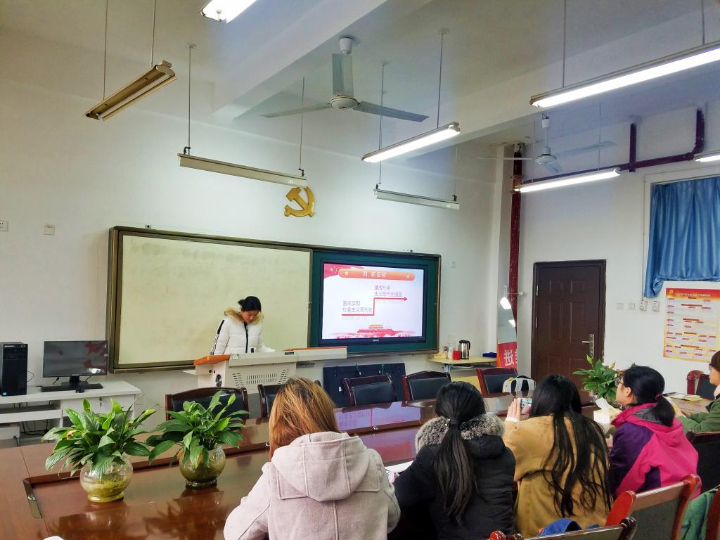 会议伊始,“今天党课我来讲”的主讲人——学生党员简子玉以四个“新”为线索,带领支部全体学生党员共同学习十九大精神中的新概念。