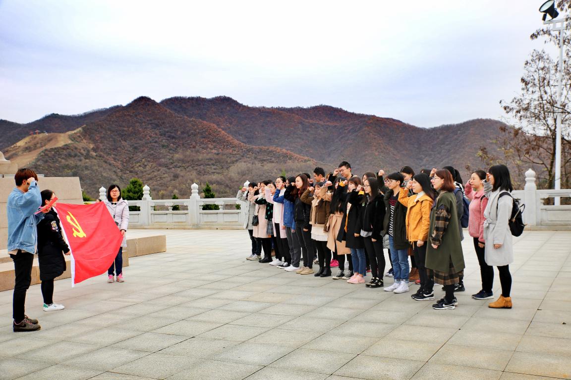 在革命英雄纪念碑前,全体党员悼念了革命先辈,面对党旗集体重温了入党誓词。在庄严的宣誓中,党员们再一次坚定了共产主义的理想信念,表达了对党的忠诚,不忘初心、牢记使命。
