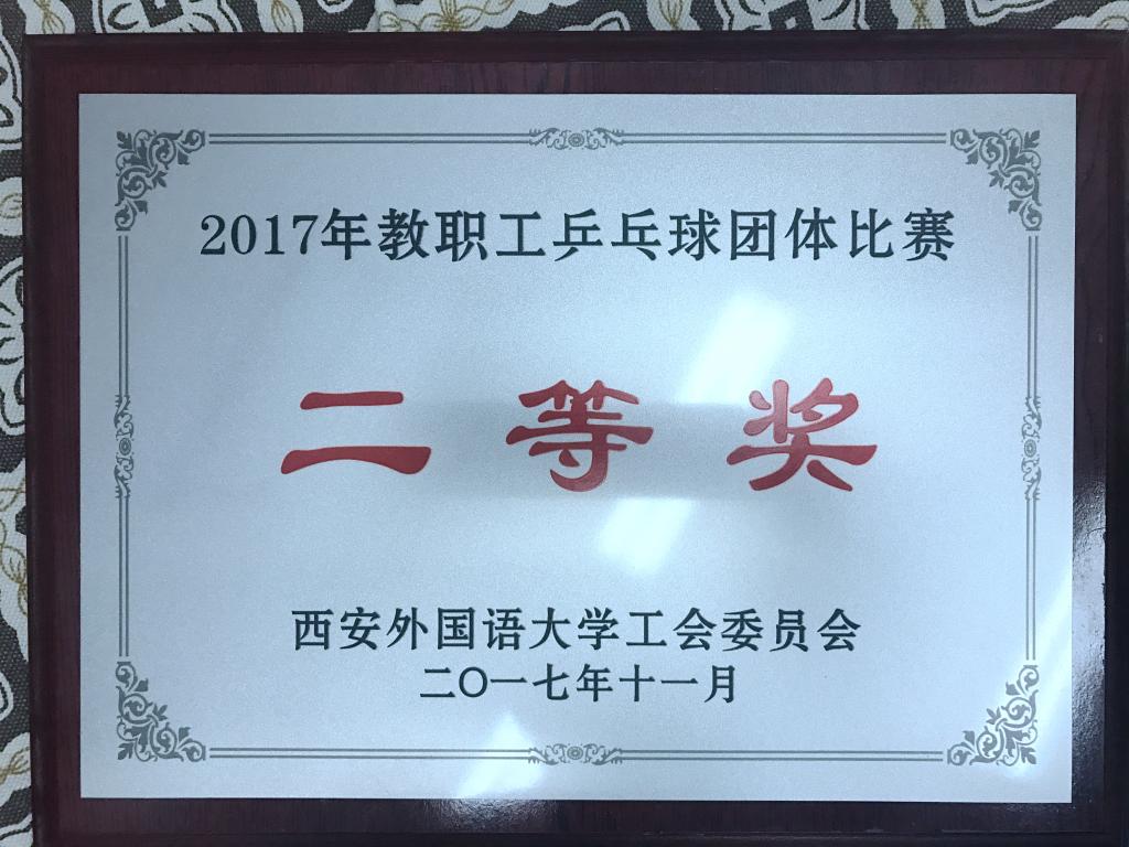 同时,也获得2017年教职工乒乓球比赛二等奖。
