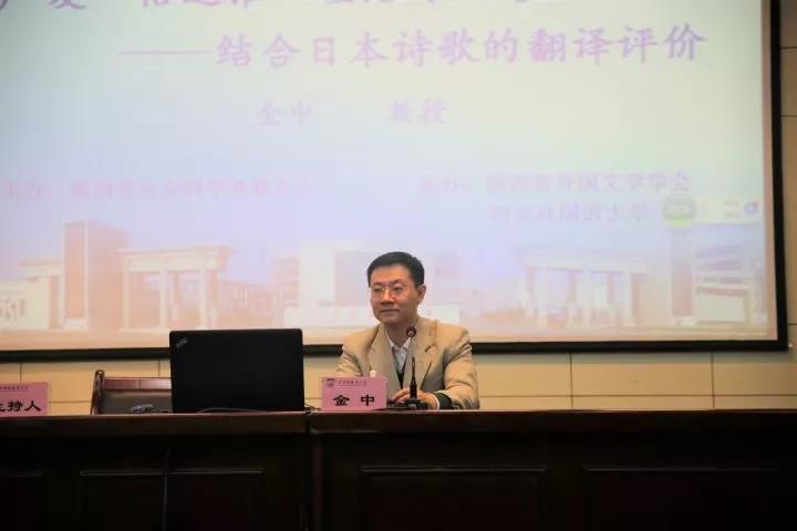 最后,金中教授结合日本诗歌进行了进一步阐述,形象生动地展示了不同译文之间的比较示意,使大家体会到了文学翻译不一样的美。
