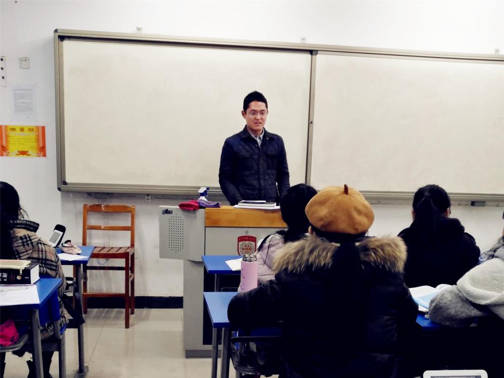 其次,王博老师就临近假期之际的相关事宜向各班做以说明。元旦之后,院系不再安排统一的自习,他希望同学们能够合理、有效、自主地安排复习时间,积极备考,考出成绩、考出风格。同时,就临近假期的安全问题,王博老师也一再强调,注意校内、宿舍、校外等安全问题;在试后离校、乘坐交通工具返家等过程中要注意宿舍卫生的整理、水电门窗等安全问题的预防,也要注意自身财产等安全问题,更要用时间不断提升自己的知识储备,文明、安全、健康、充实地度过假期。