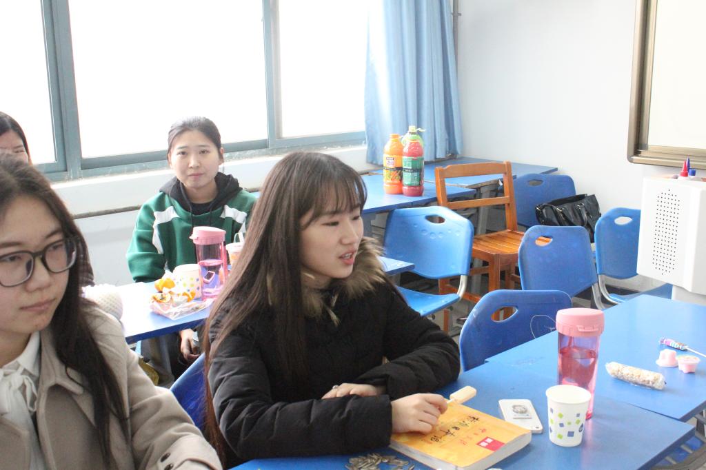接下来同学们踊跃发言,积极与老师们互动交流,会场自始自终洋溢着热烈、轻松、愉快的气氛。同学们依次谈到了自己这两年学习的感受和收获。他们向任课教师表达了自己最诚挚的谢意:在这两年的日语学习过程中,明显感觉到日院老师认真负责的工作态度,周六日上课时的风雨无阻,带病依然上课的坚持精神。而郝雯老师同样谦虚地回应道:“这种精神也同样来自于大家,是大家的支持给了老师坚持的动力。”