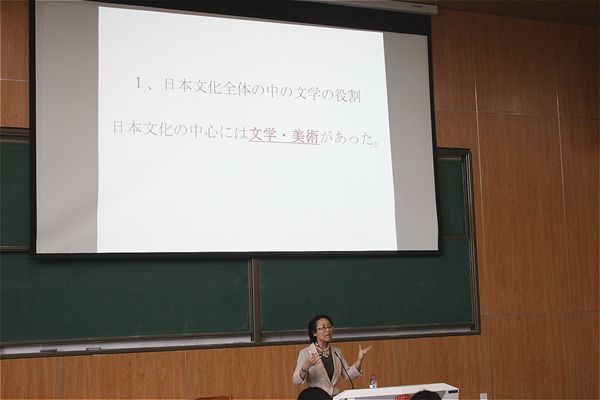 上午10点在实验楼D区107会议室,邱雅芬教授就“芥川龙之介文学研究”作了专题讲座。首先邱雅芬老师以日本文学的特质与美术的关系,生动的引出了日本文学的演变与发展,并从当时社会的习俗,宗教信仰描绘了日本文学与之的相互影响。接着邱雅芬老师结合历史分析了中国思想文化对日本写作的影响,再通过日本文学特质来研究芥川龙之介的文学之美。最后邱雅芬老师总结了芥川龙之介的作品特点以及同时期作品的相似之处,分析了使用词汇的精妙与蕴藏历史的浓厚。同学们认真倾听学习,邱雅芬老师为产生疑惑的同学进一步深入讲解。 下午2点在教学楼A区111会议室,邱雅芬教授对村上春树作品给大家作了精彩的讲座。首先邱教授对《海边的卡夫卡》进行了简单的背景介绍和小说章节特点。其次,邱教授对《海边的卡夫卡》开展了全面的介绍,以“佛教宇宙观”为关键字为大家讲解了《海边的卡夫卡》。接着,从“村上春树与石原慎太郎”、“日本战争记忆:被害者幻象”、“战争之恶与《麦克白》”、“佛教宇宙观与忘却:走出战争阴影”这四个方面入手,结合评论家们的评论与书本原文讲述了村上春树的战争观点。讲座中,邱雅芬教授结合自身读书的经历与感受,让大家对《海边的卡夫卡》有了深入彻底的理解。最后邱雅芬教授与同学们进行了热烈的讨论,并对同学们的问题进行了一一解答。 邱雅芬教授的此次讲座,增加了同学们对日本文学的了解,开阔了同学们对日本文学的眼界,教会同学们研究时应注意各方面的影响统筹兼顾,使大家了解了芥川龙之介文学以及村上春树作品的同时深入了对日本文学知识的感知,为今后的日语学习增添了更多动力。