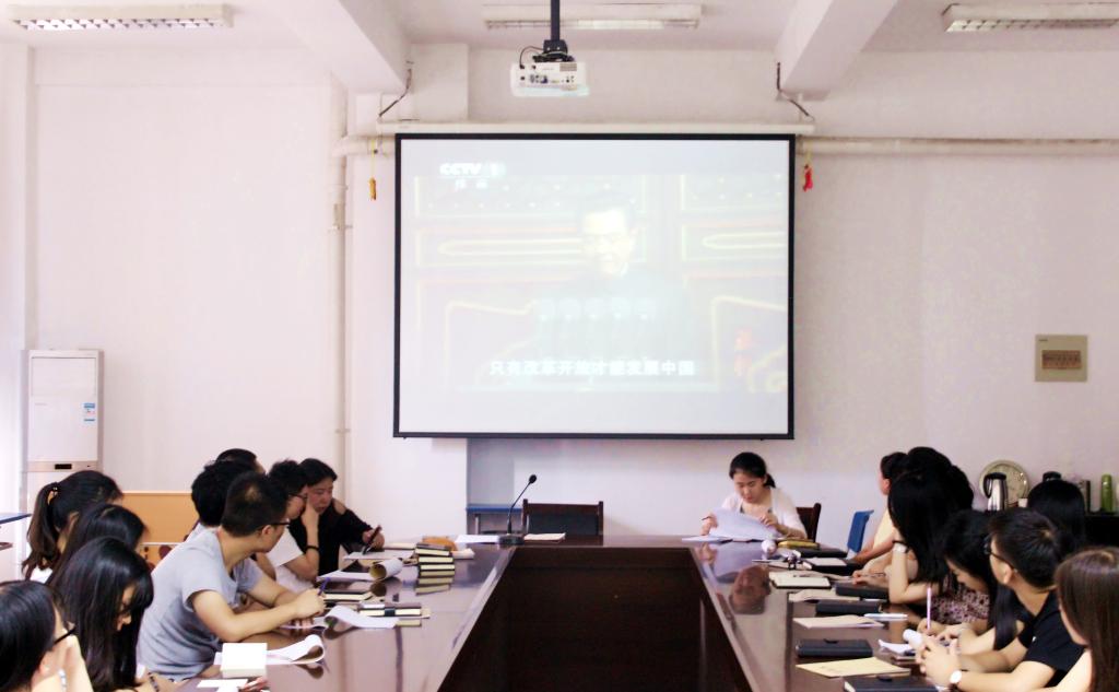 随后,学生第一、第二党支部党员依次分享了暑假期间“两学一做”学习教育的心得体会。党员们严格按照支部学习教育方案,认真落实学习计划,利用微信平台、QQ群等方式开展了学习交流,增强了学习时效性;部分党员参加了“三下乡”暑期社会实践等活动,通过开展中华传统文化风采展、“一带一路”知识竞赛、“讲红课·唱红歌·访红军”等一系列活动,践行“两学一做”学习教育精神,发挥党员的先锋模范作用。最后,学生支部全体党员一同观看了红色文献纪录片《旗帜》。