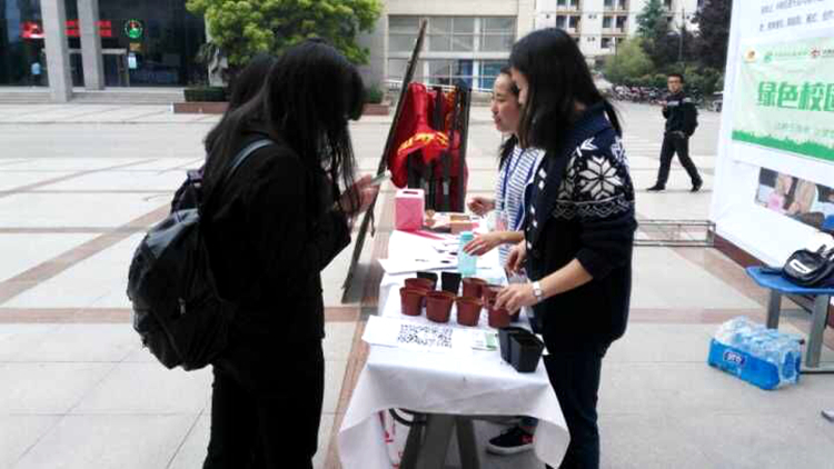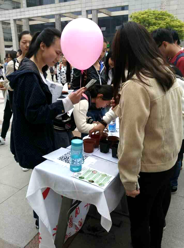 早上9点半左右,志愿者们开始布置场地,在学子广场摆好桌椅、搭起展板,张贴海报条幅,并准备了种子及花盆等。上午10时许,领养活动开始,同学们排起一个又一个长队领养植物,场面异常火爆。大家纷纷表示,一定会用心照顾绿植,让它顺利发芽成长。活动期间,许多师生驻足围观,领取种子并发布微博传递环保理念。在发放过程中,志愿者们还向师生们传授了种植方法和注意事项。领到幼苗的同学们高兴的说:“我们要将自己领养的幼苗带回宿舍,精心培育,节能降温,让它成为我们的绿色空调”。
