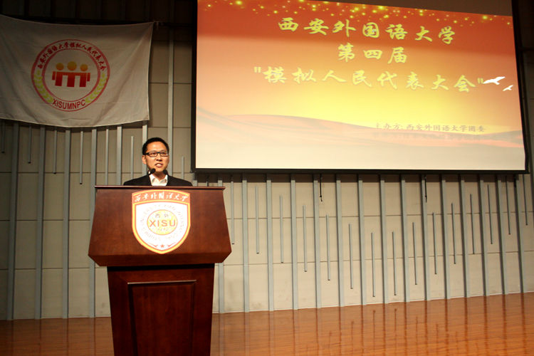 4月7日晚,由校团委主办、我院团工委承办的百合漫画 第四届“模拟人民代表大会”(XISUMNPC2016)在教学楼JA111报告厅室举行。校团委书记单升军、校团委兼职副书记黄星元,部分学院(部、基地)团工委书记、副书记,以及来自汉学院、英语实验基地、商学院、英文学院、东方语言文化学院、西方语言文化学院等院(部、基地)的300余名学生参加了活动。