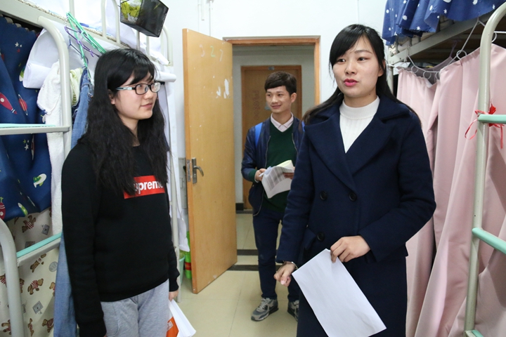 老师们在对宿舍进行检查的同时,也对同学们的日常学习和生活情况有了一定程度的了解,并提出了一些生活安全方面的建议。大多数宿舍室内卫生整洁,物品摆放整齐有序,老师们对一些安全卫生方面表现优异的宿舍提出了表扬,鼓励全体同学向优秀看齐。由于天气较冷,一些宿舍门窗紧闭,使得空气无法流通。老师们提醒大家,春天气候干燥,为了避免细菌滋生,每天需适度开窗通风换气。在安全方面,个别宿舍内出现乱接插线板、物品摆放位置不当等隐患,检查人员及时提醒并监督改正。所检察宿舍内均未发现违规电器。