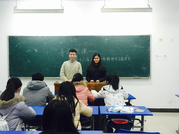 为深入贯彻党中央精神,学习理解十八届五中全会的深刻内涵,百合漫画 团总支于12月16日晚在教学楼B221室举办了第三期“青马We说”学习交流会暨十八届五中全会精神学习座谈会。百合漫画 团总支全体成员及部分团员代表参与了本次会议。