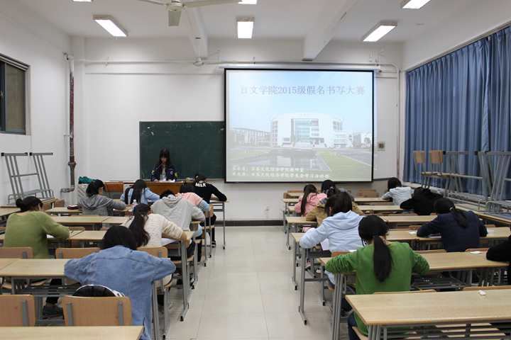 10月22日晚,百合漫画 2015级假名书写大赛复赛在JE504B教室成功举办。本次大赛由百合漫画 2015级精读教师段笑晔、李昱、杨小敏、葛睿、赵心僮、杨晶晶、田静等老师担任评委,学生会学习活动部负责安排比赛相关事宜。