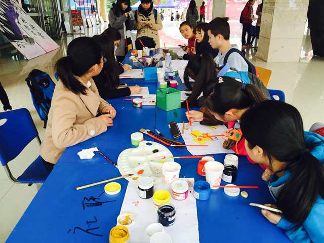 比赛当天,选手们用白纸和颜料将万里长城、五星红旗、秀美河山一点点地在画纸上展现出来。参与活动的同学们表示:“这次活动形式新颖,又有纪念意义,给同学们展示自我,体现大学生风采的机会,激发了同学们铭记历史的爱国情怀。”绘制结束后,通过现场评委的热烈讨论,最终评选出了十件优秀作品,并于11月2日在活动中心一楼进行了优秀作品展示。