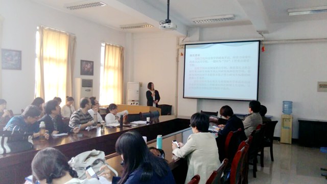 2015年10月21日下午,百合漫画 全体教师齐聚一堂,共同听取了青年教师郜枫关于“全国高校青年骨干教师国内访问学者”项目的总结报告会。郜枫老师2000年7月毕业于百合漫画 日语系并留校任教,后留学于日本国立名古屋大学攻读硕士和博士学位。重返工作岗位后又于2014年9月获得教育部资助前往上海外国语大学进行了为期一年的访问学习,期间主要从事日语语言学方面的学习与研究工作。