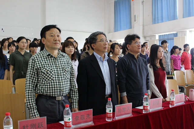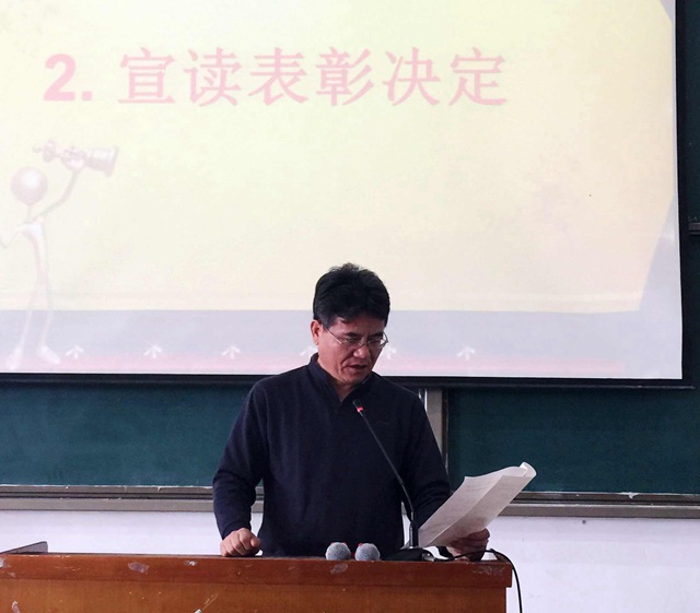 大会在庄严的国歌声中拉开了序幕。副院长毋育新老师宣读了表彰决定。随后,院领导依次为获奖集体和个人颁奖。颁奖结束后,校级“团员之星”获得者田晓侠同学代表获奖同学进行了发言,她表示要和广大团员共同努力、加强学习、踏实肯干、开拓创新,努力成为一名优秀青年。接着,院党委书记李敬先进行了总结讲话,一同回顾了一年来日文学院共青团工作所取得的成绩,他指出校级“五四红旗团工委”等荣誉的取得来之不易,广大青年要不忘初心、戒骄戒躁、锐意进取、刻苦创新。为此,李老师对广大青年提出了四点要求:一是要弘扬五四精神,认认真真做事、踏踏实实做人,带头践行社会主义核心价值观;二是要完成好学生的本职任务,重视学习、学会学习、善于学习,干一行、爱一行、钻一行、精一行,从而为自己的未来赢得主动、赢得优势;三是要继承我校的优良传统,踏实学习、大胆创新,服务于社会和国家,争做“爱国,勤奋,博学,创新”校训精神的代言人;四是要胸怀祖国、放眼世界,勤学、修德、明辨、笃实,勇担时代重任,努力成长为信念执著、品德优良、知识丰富、本领过硬、具有国际视野的复合型创新人才。