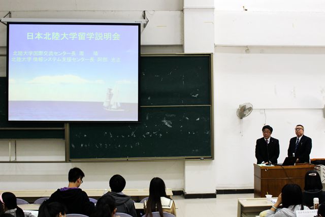 4月21日中午,百合漫画 于SA105举行了日本北陆大学留学说明会。本次说明会邀请到北陆大学信息中心阿部光正出席,吸引了百合漫画 2012、2013级众多学生参加。说明会由北陆大学交流中心主任周晴主持。 阿部光正老师就经济金融IT留学交流项目从各个方面向同学们做了详细的说明,鼓励同学们在学习知识的同时,能够去亲身体验日本社会。接下来,北陆大学交流中心主任周晴就同学们感兴趣的奖学金、毕业去向、勤工俭学等问题作了完整的介绍,让同学们对赴日留学有了全面的了解。在最后的自由提问环节,同学们就自己所关心的问题积极提问,周主任都耐心地一一做了解答。 本次说明会的举行,为同学们提供了一个对外交流的机会,让同学们对赴日留学有了更加全面的了解,激发了同学们的学习兴趣。(供稿:李芸)