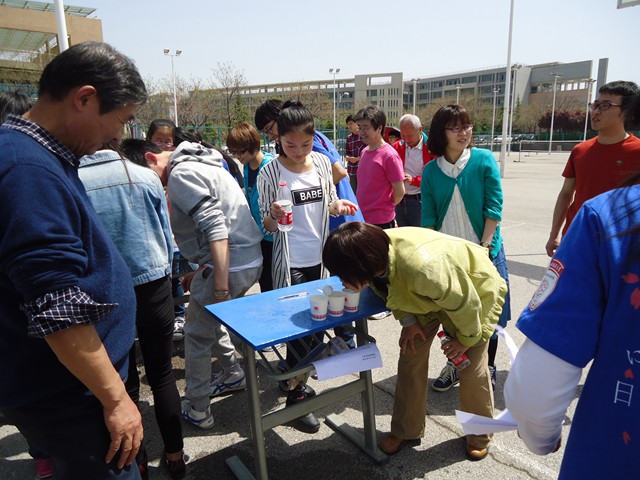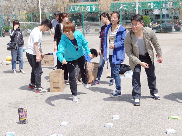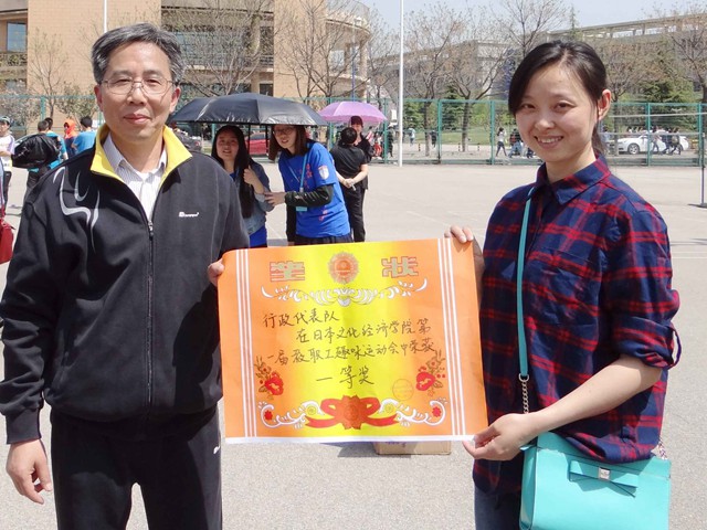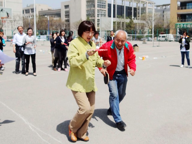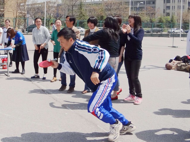 本次趣味运动会分为团体赛和个人赛。团体赛分为行政、翻译、经贸、日英四组进行,共有运乒乓球接力跑、水上乒乓球、保龄球等三个比赛项目。各组教师发扬团结协作精神,积极参与,现场呐喊声欢笑声一片,使比赛趣味性与挑战性并存。经过一个小时的比赛,行政部在团体赛中夺得桂冠。最后,本次趣味运动会在活泼有趣的套圈比赛中圆满结束。颁奖结束后,全体教职工在操场合影留念。