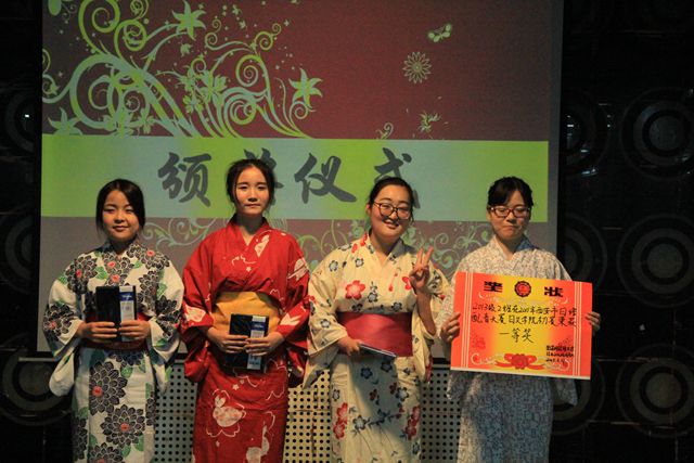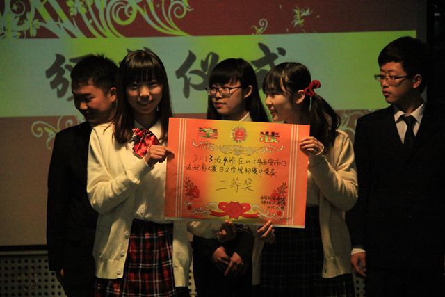 在孙院长精彩的致辞后,比赛正式拉开了帷幕。本次比赛共有13个参赛团队,《轻音少女》用甜美的声线完美地诠释了少女的日常,《卡门之激情》中用独特的歌剧征服了观众的耳朵,《我的邻居山田君》用简单的四格漫画讲诉了不一样的家庭温馨故事。参赛选手们惟妙惟肖的配音表演赢得评委老师的一致好评和台下同学们的阵阵掌声,将整个比赛的气氛推向高潮。两个小时的比赛中,参赛选手们用流利的日语带观众们走进配音的世界,奉献了一场完美的视听盛宴。经过激烈的角逐,最终2012级1班的《狗狗大作战》获得了第三名,第二名花落2013级4班的《龙樱》,2013级2班的《笃姬》凭借精湛的配音表演捧走了第一名的桂冠。