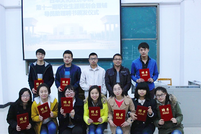 3月11日,为帮助同学们了解专业就业前景,从容应对“毕业季”,我院2012级在SD307室举行了第十一期职业生涯规划会暨辅导员助理聘书颁发仪式。会上,辅导员杜刚跃向与会同学通报了本学期的主要工作及注意事项,引导全体学生以良好的精神风貌投入到新学期的学习和生活中来。接着,杜老师就同学们关心的就业问题进行了工作安排和答疑,他指出年级就业工作小组将于本学期围绕“简历制作、如何获取招聘信息、面试礼仪、面试基本技巧及模拟面试”等内容每两周定期举行现场指导和交流学习,为同学们提供帮助。杜老师还提醒考研和出国的同学尽早设立目标、制定计划、搜集信息,做好充分的准备,也希望各班尽快统计班级同学遇到的共性问题和困惑,学院将根据统计情况,结合学院实际全力为同学们排忧解难。最后,杜老师为年级学生工作小组成员暨辅导员助理颁发了聘书,对他们的付出和努力表示感谢与肯定的同时勉励他们再接再厉,继续为年级同学服好务、做好事。