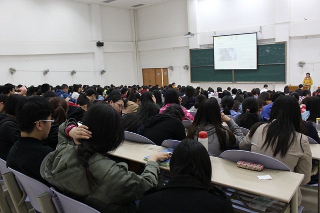 3月10日,2014级年级大会在SD307举行。辅导员兰希和全体学生参加了此次大会。大会伊始,全年级同学一同回顾了大一生活,各班用生动的活动照片、富有创意的班级视频等多种形式全方位地展示了一个学期以来班级建设的情况和活动风采,展现了大一新生团结向上的精神风貌。接下来,两名学生代表分别上台发言,他们用质朴而真挚的语言回顾了自己上一学期的学习与生活,表示将在这一学期中确立科学有效的学习方法,明确自己的奋斗目标,为即将到来的大二学期奠定良好的基础。随后,辅导员兰希老师强调了春季安全问题,也对同学们提出了新学期的期望,希望大家准确定位自我,珍惜大学美好生活,用文化知识丰富自身内涵,用实践工作锻炼宝贵品质。最后,兰希老师和全体大一学生在图书馆前合影留念。