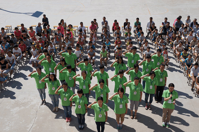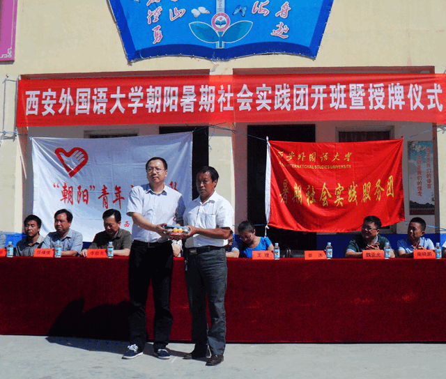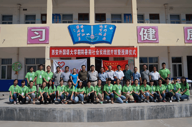 首先,白水县团委书记王理发表了讲话,对四年来“朝阳”暑期社会实践团在收水中心校持之以恒的支教事迹表示了感谢,同时希望支教队员们继续为当地孩童增强自信、培养兴趣、激励梦想。随后,单升军老师就白水县地方政府对支教活动的大力支持与重视表示感谢,同时代表校团委对同学们选择放弃暑期休息时间,积极响应国家和学校的号召投身社会实践服务活动,为当地的经济发展和留守儿童提供智力支持表示了高度的肯定和赞扬。单老师强调暑期“三下乡”活动对于当代大学生来说是一次提高个人素质、增长知识才干的好机会,希望队员们发扬不怕苦、不怕累的精神,成为有责任,有担当的青年,为当地学生带去先进的教学理念,为当地教育注入新鲜血液,鼓励队员们播撒理想的种子,让希望之花在贫瘠的土地上绽放。最后,全体支教队员在主席台前郑重宣誓,志愿为祖国教育事业添砖加瓦,表示不会辜负学校的期望,在社会实践活动中走基层、见世面、受教育、长才干,服务当地经济和社会发展,为实现“青年梦、中国梦”而努力奋斗。仪式结束后,与会领导和志愿者们合影留念。