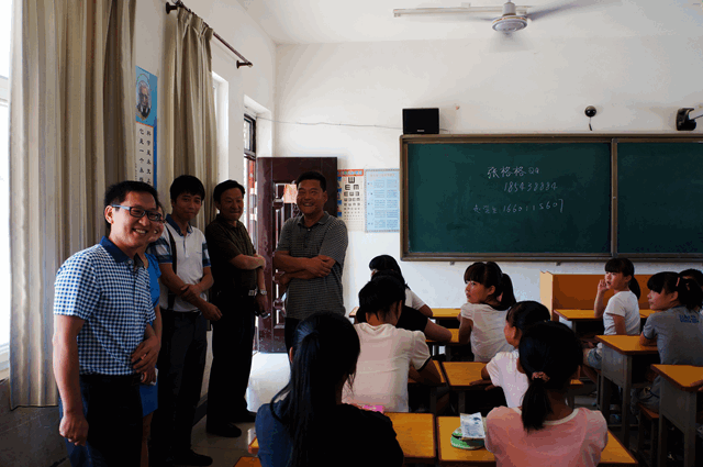 单升军老师一行得知志愿者们在繁重的教学和调研任务外还要自己承担团队每天的伙食后亲自来到厨房,亲切慰问正在忙碌的支教队员,对大家自力更生的精神表示肯定,鼓励大家克服身体和饮食方面的困难,在社会实践活动中锻炼自我、收获友谊。李敬先老师悉心叮嘱队员们注意安全,身体不适要及时就医,互相关心,以更好的状态投入到教学和调研活动中去。在队员宿舍,他们详细了解队员们的生活情况,鼓励队员们克服艰苦的物质条件。之后,单老师一行在收水中心校学校领导和日文学院“朝阳”暑期社会实践服务团渭南分队带队老师张亚璇的带领下参观了校少队部、德育展览室和各教室等校园设施。在少队部和德育展览室,他们全面了解学校近年来各项工作的开展情况,希望将少队工作和德育工作充分结合,培养学生爱校园、爱祖国的情怀;在教室,单书记鼓励同学们要勤学奋进,成为国之栋梁。