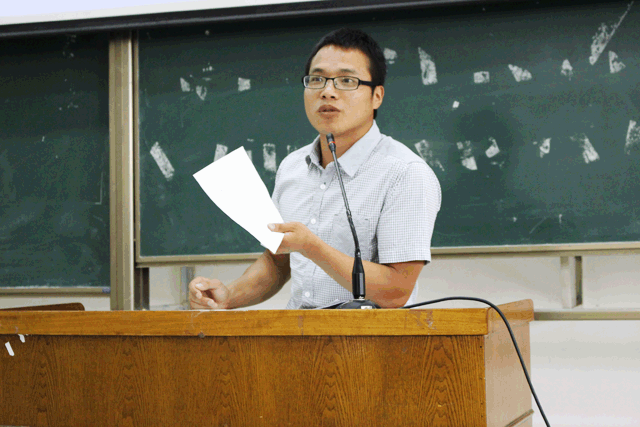 辅导员杜刚跃老师带着2012级全体学生一同回顾了平淡而充实、简单而难忘、经历了成功与失败、留下了眼泪与微笑的两年大学生活。在过去的两年里,2012级全体学生们学着独立思考、学着为自己的选择负责、学着享受成功的喜悦、学着承受失败的痛苦、学着让自己变得成熟,在成长的道路上留下了一路印记。同时,杜老师整理了全年级学生一学年以来所获得的奖项和取得的成绩,在会上对所有获奖的同学表达了祝贺和褒奖,并号召大家树立榜样,相互学习。随后,杜老师还列出了一年来为年级工作作出了贡献和努力的所有同学,并对他们表达了感激之情。
