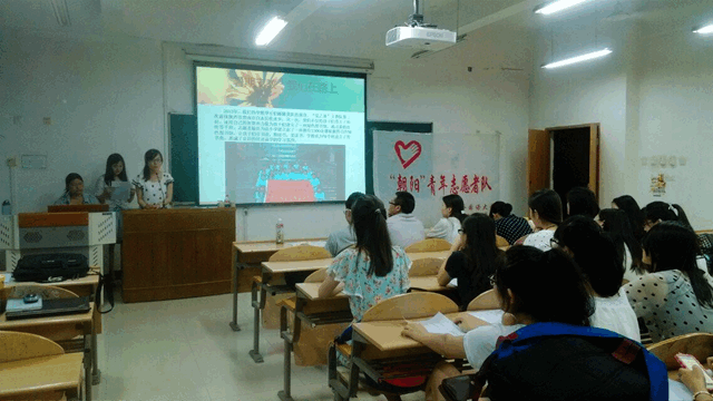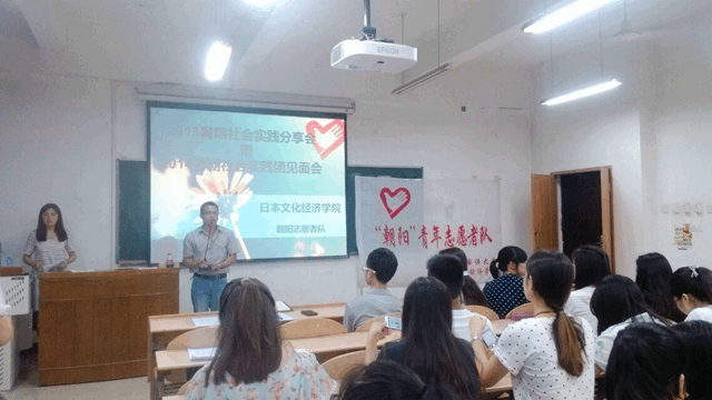 2014年6月9日晚,百合漫画 “朝阳”志愿者队在JA206举行了2013暑期社会实践分享会暨2014暑期社会实践服务团见面动员会。校团委志工部部长杜刚跃及百合漫画 志工部部长兼本次暑期社会实践服务团带队教师张亚璇老师出席了参加会议并与来自日文、旅游、俄语、东语、英教和经济金融等6个学院的44名服务团成员进行了经验交流和思想动员。