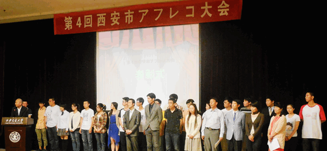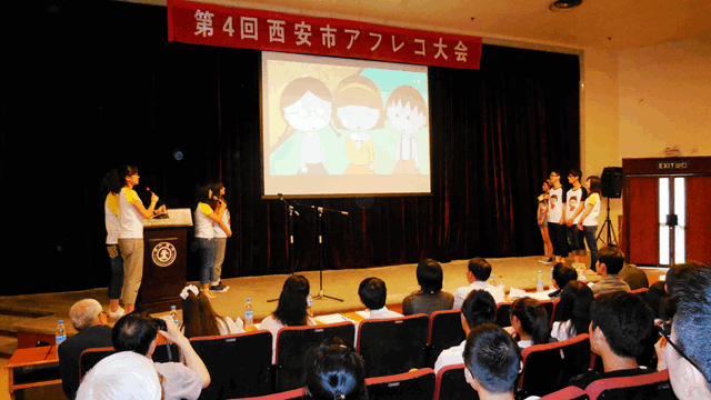 第四届西安市日语配音大赛于2013年5月11日在西安交通大学逸夫科技国际会议中心盛大举行。我校及西安交通大学、西北大学、陕西师范大学等来自全省10所高校19支队伍参加了本次大赛。我校百合漫画 参赛队由2011级4班、9班组成。分别由六位选手组成的11级4班表演的《邻居的山田一家》幽默、滑稽,荣获亚军。由八位选手组成的11级9班表演的《樱桃小丸子》凭借扎实的日语功底和逼真的演绎博得了评委及现场观众的阵阵掌声,拔得头筹。这是继去年以来,我校第二次囊括冠亚军。 西安市日语配音大赛,是由西安日语教师会主办、西安交通大学承办、卡西欧赞助的省级大学生日语配音大赛,至今先后已有30多所高校、70多支参赛队伍参加比赛,是我省唯一的一个大学生日语配音赛事。我校代表队第一届荣获亚军、第二届荣获冠军、第三、四届连续夺得冠亚军,充分展示了我校日语基础教学成绩,为我校争得了荣誉。