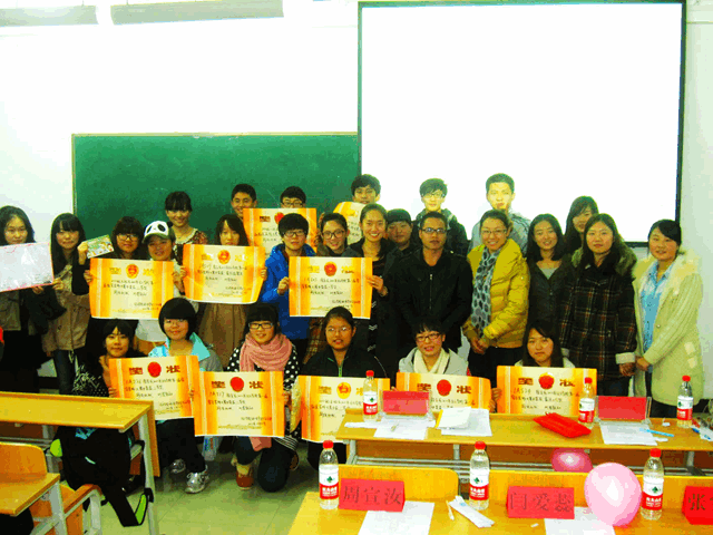 2012年11月22日晚,日本本文化经济学院第一届宿舍装饰大赛决赛暨颁奖晚会在 SD207隆重举行。到场的嘉宾有12级辅导员杜刚跃老师、11级辅导员赵慧静老师、12级5班代班牛迎春、学生会副主席姚其征、志愿者队队长周宣汝、生活部部长张婷团总支张月。 本次宿舍装饰大赛主题为“曰归曰归”,教室装饰大赛主题为“筝奏和歌”。首先,由两位主持人宣布比赛开始。接下来,2012级入围决赛的10个宿舍成员通过PPT展示了各自的 宿舍装饰成果。本次宿舍装饰大赛宿舍装饰题材多样,创意新颖,内容丰富,有的包含深情,有的风格幽默,有的温馨友爱。通过同学们的生动解说,到场的嘉宾与观众感受到了舍友之间的关怀、伙伴彼此的协作。之后,杜刚跃老师对比赛做了全面的总结与评价。最后,到场的嘉宾为在本次大赛中获奖的班级和宿舍颁发了奖项。 本次宿舍装饰大赛和教室装饰装饰大赛为同学们提供了一次展示创意和团结协作能力的机会,增进了同学之间的感情,为同学们营造好了良好的生活和学习环境。同时,也体现了日文学院团结、温馨、积极向上的精神风貌!