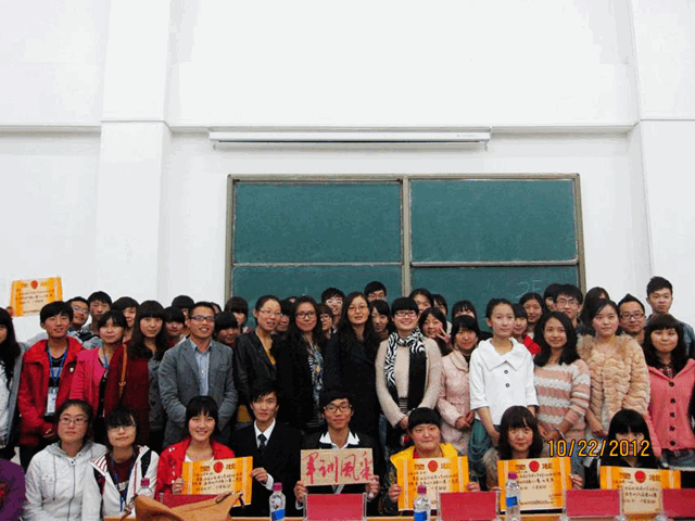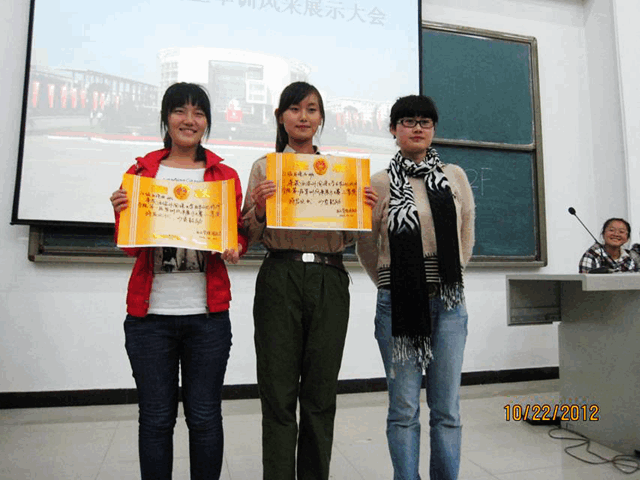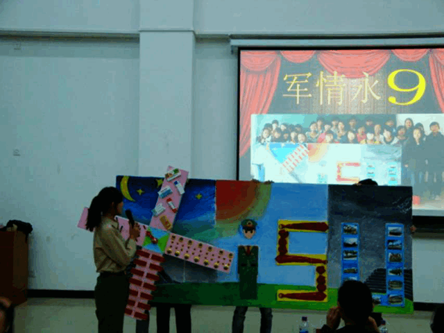 2012年10月22日晚,百合漫画 军训风采大赛在D区107教室正式拉开了帷幕。出席本次活动的有学院党总支副书记李敬先老师、团工委书记李佳老师、2012级辅导员杜刚跃老师、文晓夏老师等其他年级嘉宾老师,以及团工委各部门的学生干部等。 大赛开始前,首先由党总支副书记李敬先老师致辞,李书记简单回顾了自己的军旅生涯,表扬了在军训中不怕吃苦勇于拼搏的同学们,并对军训中辛苦工作的辅导员老师们表示感谢。随后,主持人宣布军训风采大赛正式开始。2012级各班依次展示了具有各班特色的军训纪念作品,并进行了创意解说。作品主要分为两大类,纪念树和回忆转盘。看似平淡的主题,却被各班同学们演绎得丰富多彩,充满了创意。走马灯式的转盘,贴满照片和回忆的树,配合精彩的幻灯片播放,使大家耳目一新,赢得了同学的阵阵惊呼与掌声,老师们也都投来了赞许的目光。大会最后,播放了教官的寄语录音,更让同学们想念起和教官及战友们在一起并肩奋斗的那些日子。最后,由杜刚跃老师进行总结致辞,杜老师充分肯定了同学们在军训中的优异表现,并指出军训是大学生活极为重要的开始,希望大家一直保持军训时的良好精神面貌,规划好自己的大学生活。 整场大赛将大家带回了军训时那段辛苦却十分充实快乐的美好时光。 军训虽然结束了,但是通过军训,新生们收获了军人般坚强的意志、战友般纯洁的友谊和团结友爱的集体意识。相信这些美好的品质将会带领我们开启精彩的大学生活。大赛结束后,同学们纷纷表示通过这次军训风采展示大赛,再一次回温了军训那难忘的十五天,更加体会到军训的意义所在。军训,记忆中最深的那抹绿色,将是我们记忆中最珍贵的回忆!