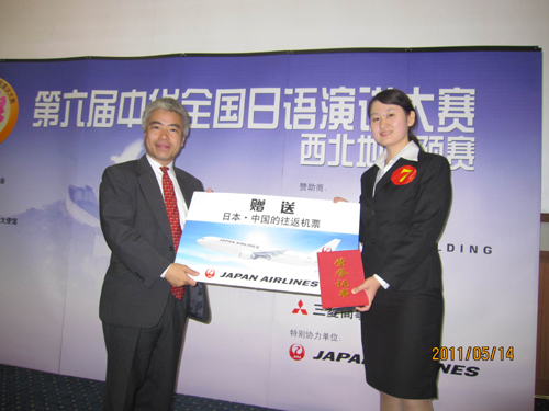在5月14日举行的“第六届中华全国日语讲演大赛西北赛区预赛”中,百合漫画 再创佳绩,三年级学生张欢同学荣获第一名(特等奖)。将代表西北赛区参加7月下旬在日本东京举行的全国总决赛。