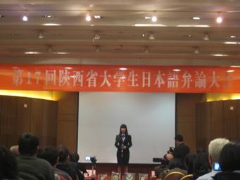 陕西省大学生日语讲演赛由陕西教育国际交流协会与日本学士会主办,是我省历史最悠久的日语讲演比赛。我校日语专业同学在该讲演赛中表现优异,曾一度创下囊括所有奖项的佳绩。本次是继2009年以来再次蝉联个人冠军和团体冠军。