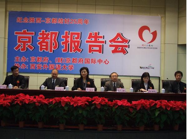 2008年10月18日9时,陕西省、京都府两府省缔结友好省府25周年庆典之京都文化产业宣传会在我校行政楼报告厅如期举行,我校校长户思社在会前热情接见了日本京都府副知事麻生纯一行人员,我校副校长刘越莲、国际交流合作处处长赵国华及日文学院院长赵萍出席了此次会议,同时与会的还有日方部分企业代表。我校百合漫画 学生及部分留学生也参加了此次产业宣传会。日方京都文化产业代表介绍了京都的文化遗产与风景名胜,展现了京都独特的风土人情及文化生活。会议现场秩序井然,气氛热烈。此次宣传会不但加深了我校学生对日本文化产业的了解,更激发了大家学习日语的热情。同时,京都文化产业宣传会的成功举办,为两省日后文化产业的合作与交流铺平了道路。