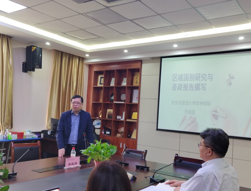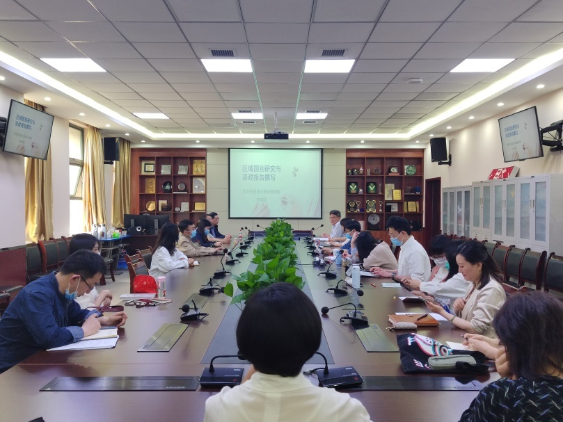 齐博士以服务“一带一路”倡议为出发点,从区域国别研究的重要意义及基本要点出发,就咨询报告的性质、咨询报告的特点、咨询报告的基本框架进行了讲解;针对咨询报告的撰写目的、选题、撰写原则、撰写技巧进行了详细说明;并从外语教师的角度出发,分享了撰写咨询报告的心得及其建议。