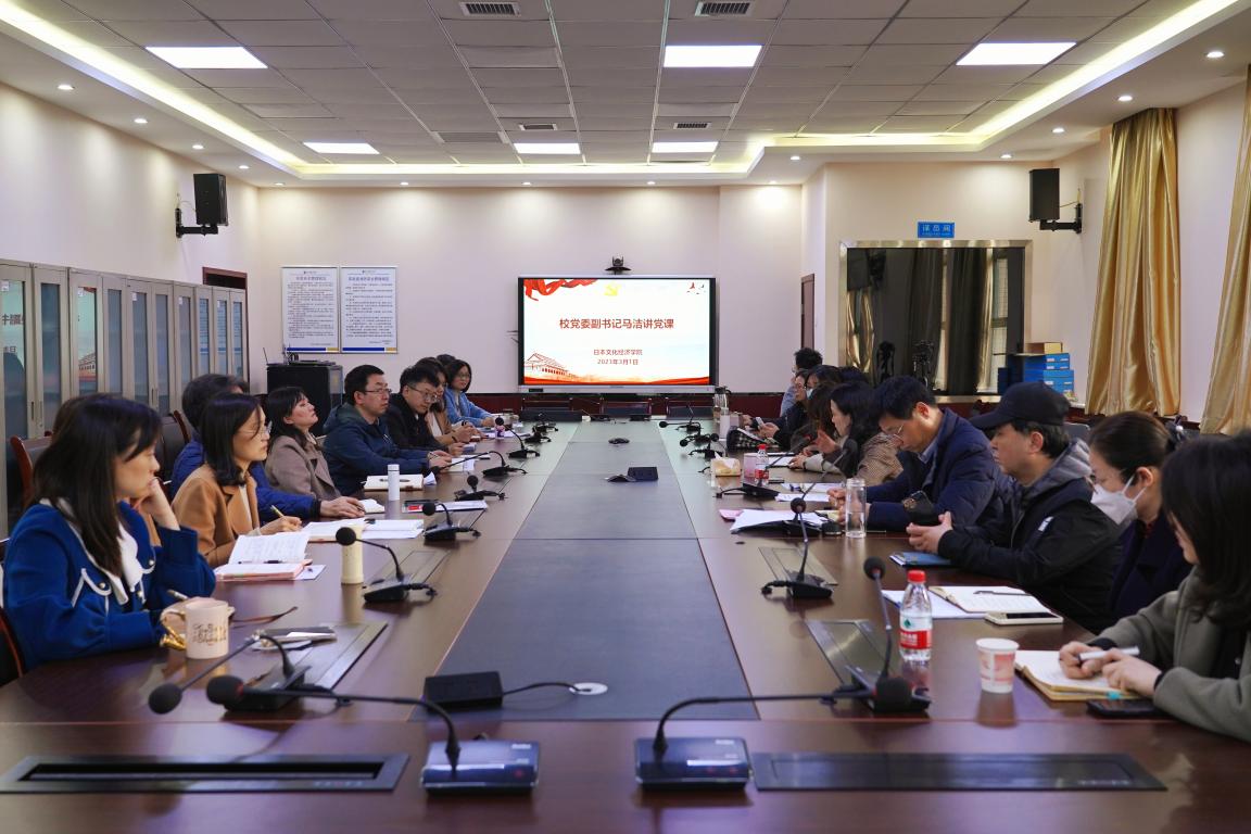 马洁围绕落实立德树人的根本任务,以我国课程思政建设的历史眼光,结合具体实例,以高校思想政治工作会、新时代高教40条、深化本科教育教学改革的“质量22条”为脉络,讲述了思政课程、课程思政和大思政课的建设与发展,为与会教职工上了一节如何“为党育人、为国育才”的生动党课,并对学院今后的工作提出四点要求:一是要从学院层面做好顶层设计和系统规划,以问题和目标为导向,谋划学院长远工作和整体工作,深入推进“大思政课”高质量建设;二是通过拓展教师眼界、深入社会与生产实践,切实提升教师育人能力;三是有效使用校内外教育教学资源,延伸课堂教学主渠道,开创思政育人新阵地;四是推动基层党建与课程思政深度融合,以党建成果助推课程思政深入开展,使党建与课程思政协同共进、同向同行。
