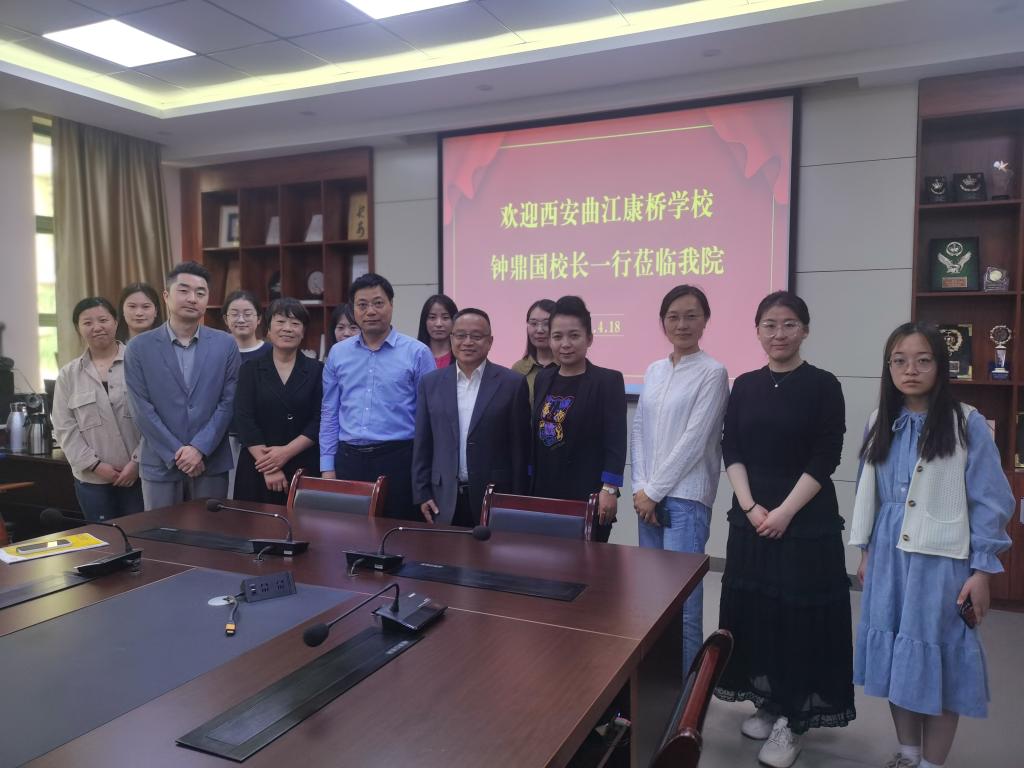 2023年4月18日上午,经陕西省慈善联合会介绍,学院特邀西安曲江康桥学校在H207会议室开展合作交流暨专场招聘会。西安曲江康桥学校校区校长钟鼎国、中学部副校长肖明珍、升学发展中心主任田元龙以及陕西省慈善联合会副会长马盼、学院党委书记高万辉、副书记龚玉伟、毕业班辅导员雷雨、屈晶晶和部分学生代表参加活动。