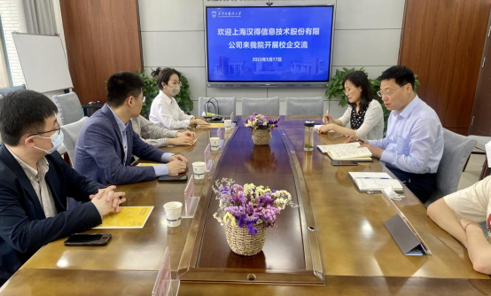 交流会上,郭少博总监详细介绍了上海汉得信息技术股份有限公司概况、主要业务方向、未来发展、岗位需求、员工培训等情况,希望今后双方在学生实习实训、企业参访、毕业生招聘等方面进行深入合作。